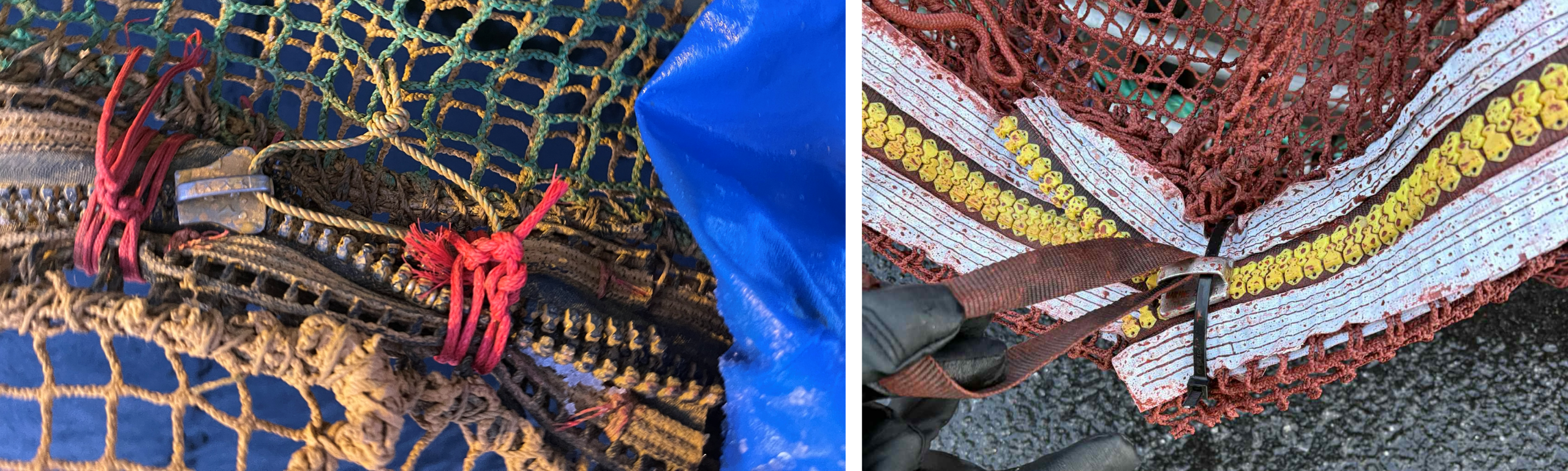 Om nedre haneføtter skal monteres tilbake igjen kan de festes midlertidig til flytekrage med god slakke. - Koble driftstau fra seigmann i notpose ved å fjerne tausjakkel.